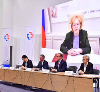 俄罗斯联邦医疗生物局局长维罗妮卡·斯克沃尔佐娃在线向与会者致欢迎辞。